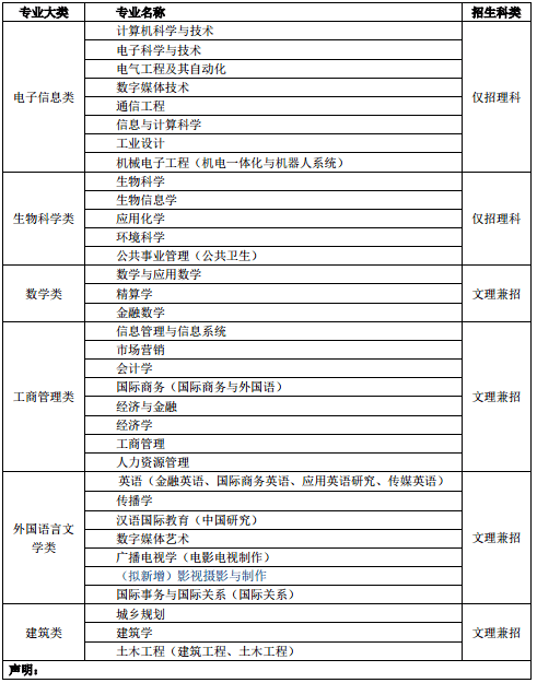 选择建筑学、会计学、经济学、经济与金融以及影视摄影与制作专业的学生必须在大一上学期通过相应的学习能力评估,第二学期不可申请转入;第二学期选择国际商务的学生必须选修 10 学分的二外课程。
