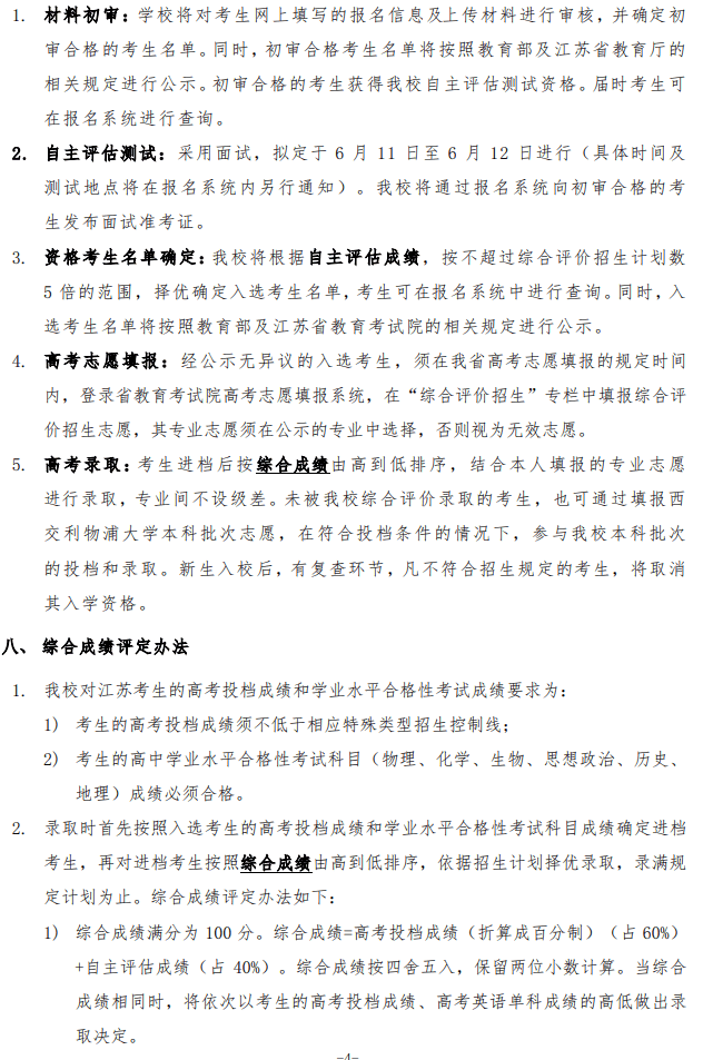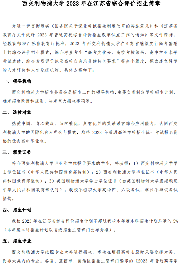 西交利物浦大学2023年在江苏省综合评价招生简章